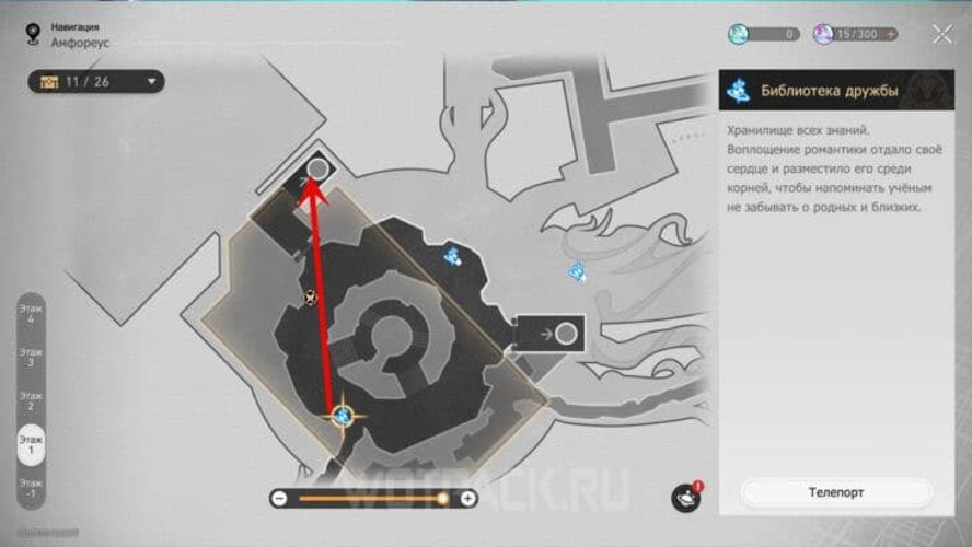 Starten Sie am Teleportationspunkt „Freundschaftsbibliothek“.