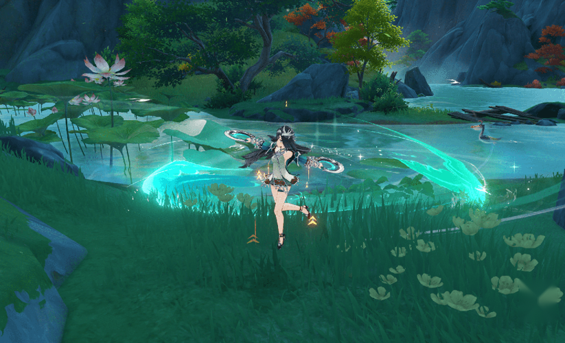 La compétence élémentaire « Danse plumée d’hirondelle-follet » constitue un moment clé du gameplay. Elle consiste en une avancée rapide qui forge un bouclier Anémo en fonction de la puissance de l’attaque de Lan Yan. Lorsqu’un ennemi est touché, elle effectue un saut en arrière, se retrouvant momentanément en suspension dans les airs. Cette posture aérienne permet d’envoyer un anneau tourbillonnant autour des ennemis proches en utilisant une attaque normale ou une nouvelle attaque, augmentant ainsi les dégâts infligés.